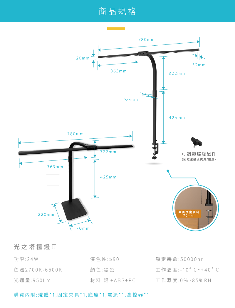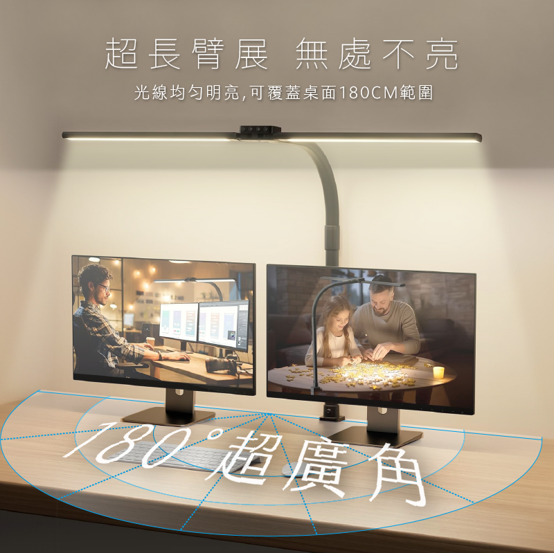 ◎雙翼設計,超大面積光照範圍,可覆蓋桌面180cm範圍
