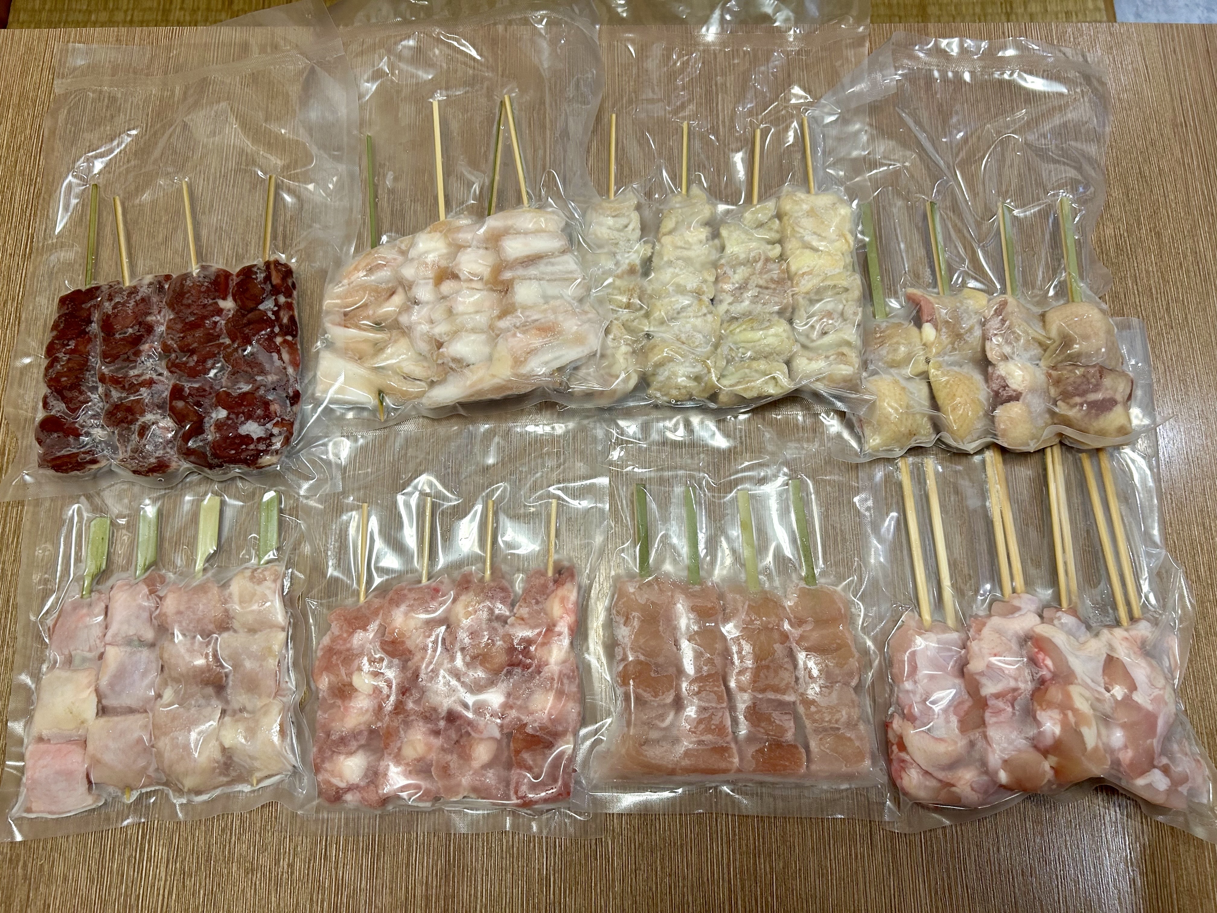 • 內容物:日式燒鳥雞腿肉串*4支、日式手羽先串*4支、雞牡蠣*4支、鷄三角骨*4支、鷄心串*4支、鷄膝軟骨*4支、雞皮串*4支、桂丁鷄里肌串*4支