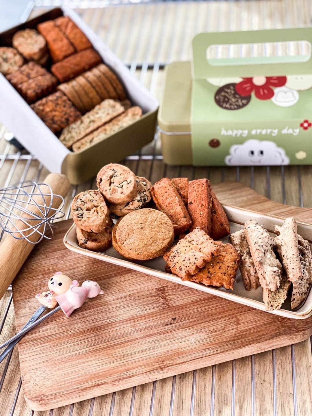 • 內容物:五款人氣鹹香代表(義大利香鬆脆餅、墨西哥香酥沙布列、肉鬆乳酪金沙酥、 煙燻香鬆起酥好棒棒、香蔥黑胡椒方塊酥)