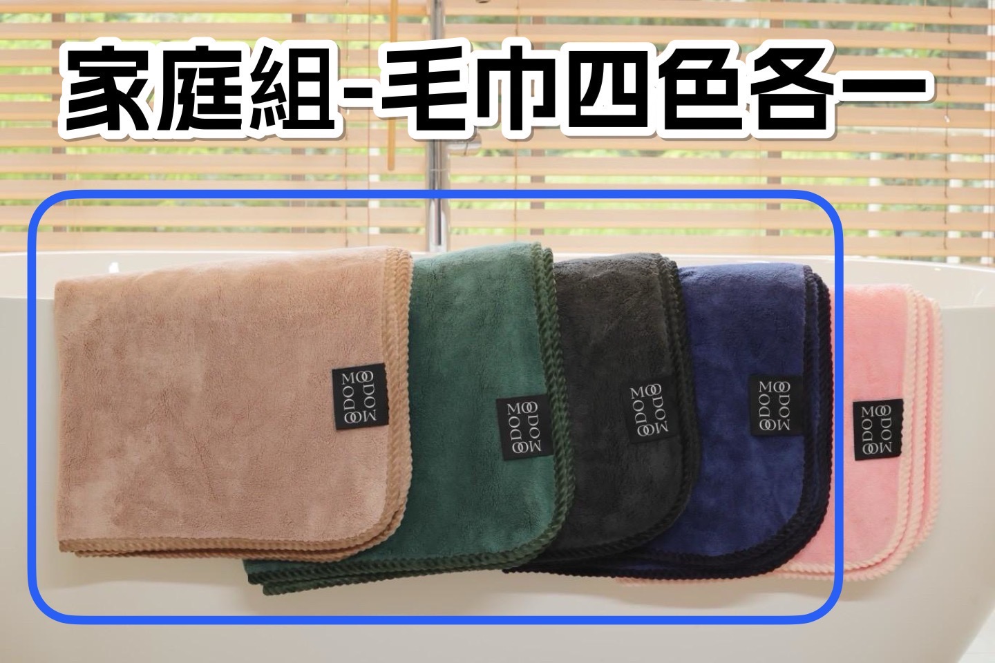 大家來團購>舒芙蕾銀離子抗菌超吸水毛巾-家庭組四色各一(松影綠、磨石灰、青黛藍、霧砂米)