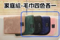 舒芙蕾銀離子抗菌超吸水毛巾-家庭組四色各一(松影綠、磨石灰、青黛藍、霧砂米)